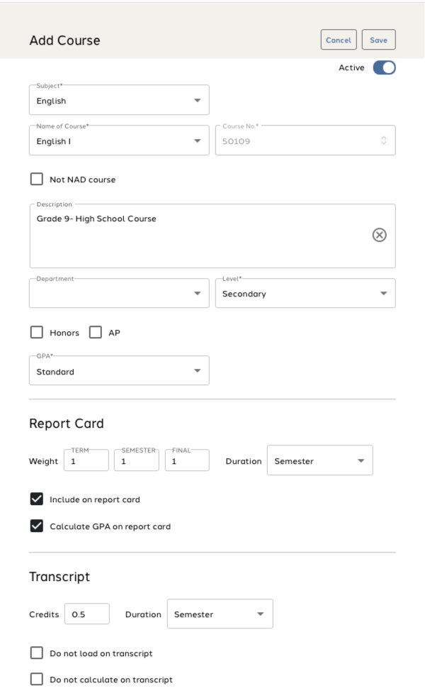 This guide will cover the steps on how to add courses to your high school.
