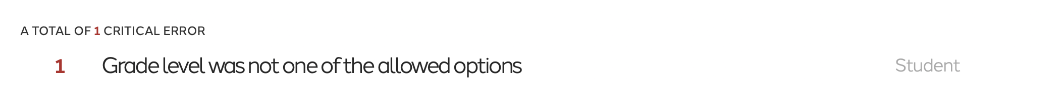 Error occurs when the student does not have a grade level. Missing grade levels are indicated by an orange triangle.