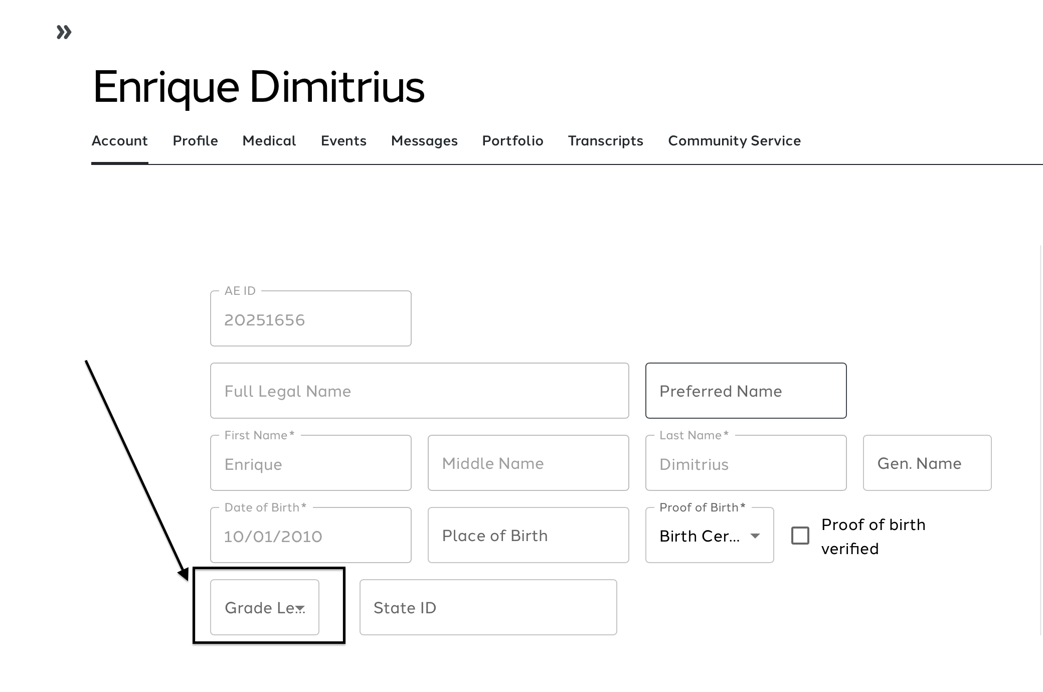 The error is fixed by adding a grade level to the student. Select the student and add grade level.