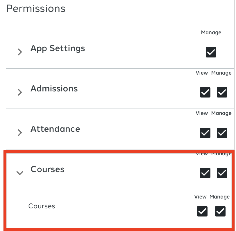 If courses is not available on the main menu, users will need to enable courses permissions from the School Profile > Security section. This can be done by navigating to Security and locating Courses . Please ensure to check this option within the designated Group that is responsible for setting the courses.