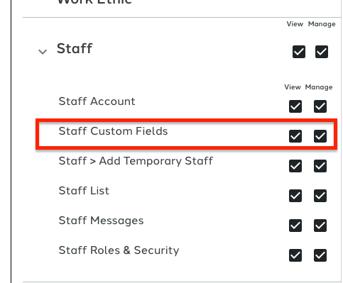 Greater control over staff custom fields. AE-Connect allows schools to create custom fields for staff. Those custom fields are now controlled with permissions. Only those with permissions are allowed to view and/or edit the custom staff fields.
