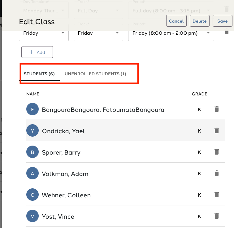 Improved enrolled vs. unenrolled view of students in Edit Class.
